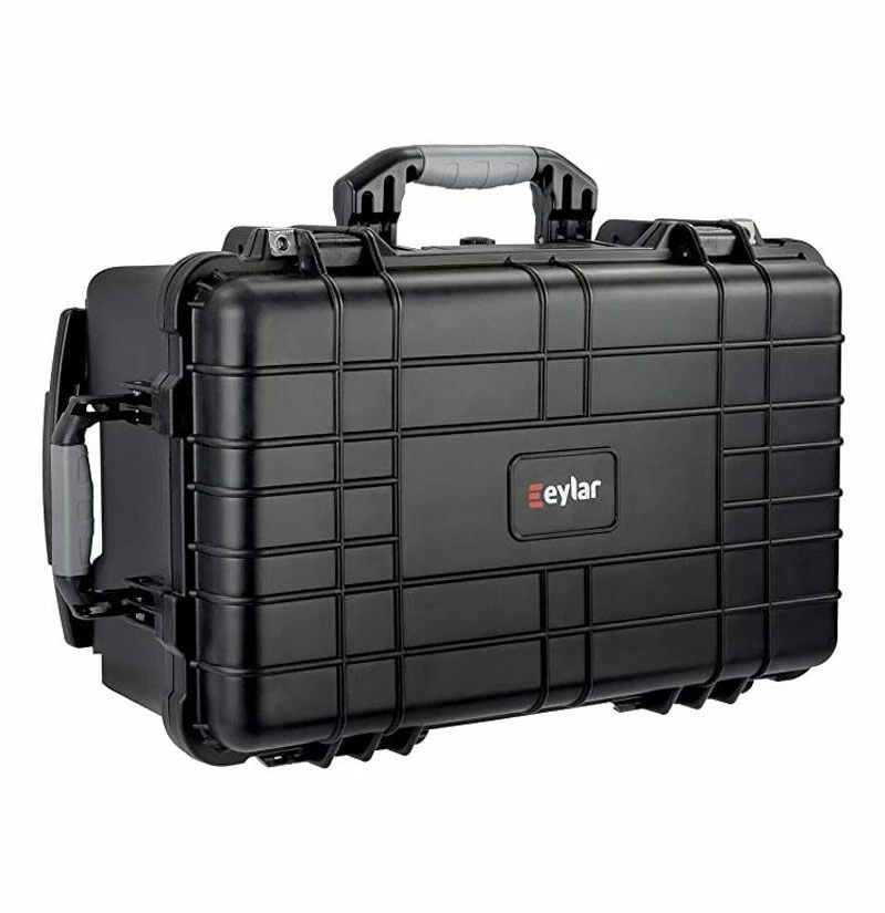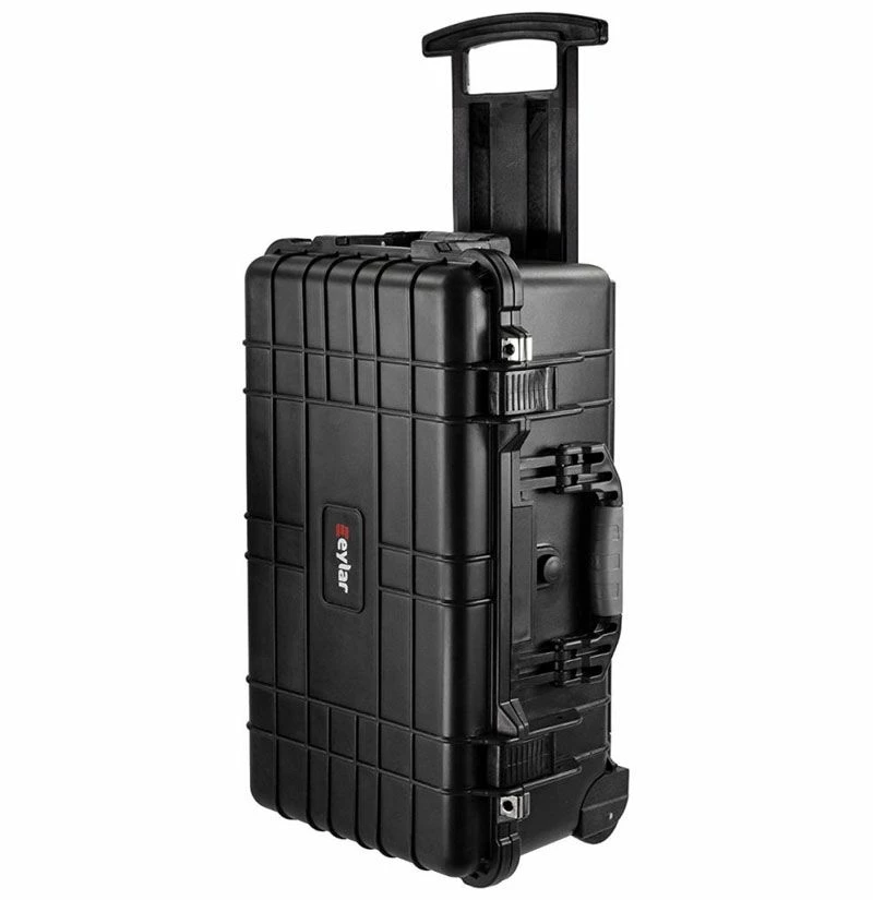 The Eylar 22 inch Large Carry On Protective Case with Pick and Pluck Foam interior is ideal for cameras, electronics, tools and other valuable equipment. This hard shell case Injection molded from reinforced high-pressure polypropylene plastic that is water resistant and crushproof.