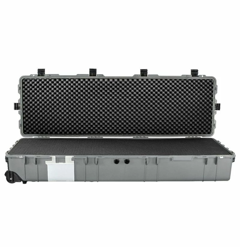 The Eylar 57 inch XXX Large Protective Case with Pick and Pluck Foam interior is ideal for rifles, electronics, tools and other valuable equipment. This hard shell case Injection molded from reinforced high-pressure polypropylene plastic that is water resistant and crushproof. Designed to secure two to three rifles or combination with optics and gear.