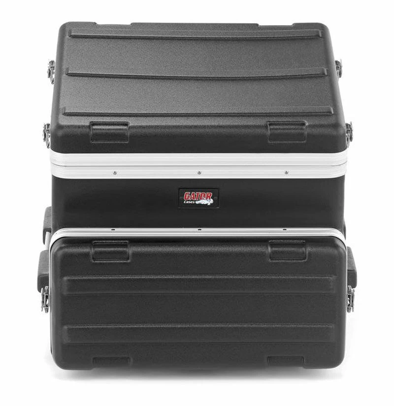 Gator’s GRC-10X4 slant top console has a 10U top 4U bottom with front, rear & top rack rails. Features including rear wire access, heat treated bolts with protective washers and comfortable recessed side carrying handles. This case is built to ATA specifications and is constructed of lightweight Molded Polyethylene.