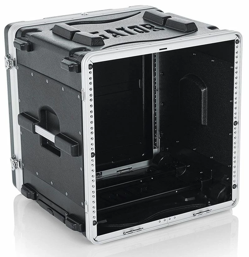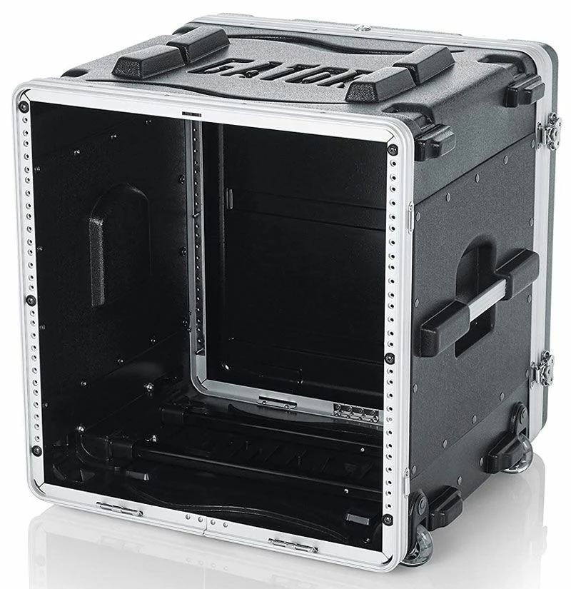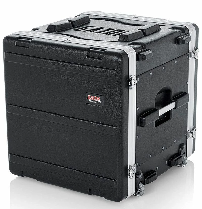 Gator’s GRR-10L Rolling Rack Case is a high-density military grade lightweight polyethylene case with features including front and rear rack rails and threaded field replaceable, 7.0mm zinc plated steel rack rails, locking lids, heavy-duty twist butterfly latches, comfortable recessed side carrying handles, pull handle and roller blade style recessed wheels.