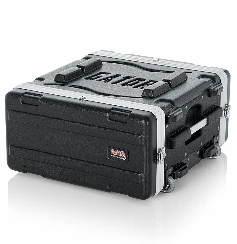 Gator 4U Powered Rack Space Molded Rolling Rack Case. 19 in. Deep Audio Rack with Wheels and Power Supply.