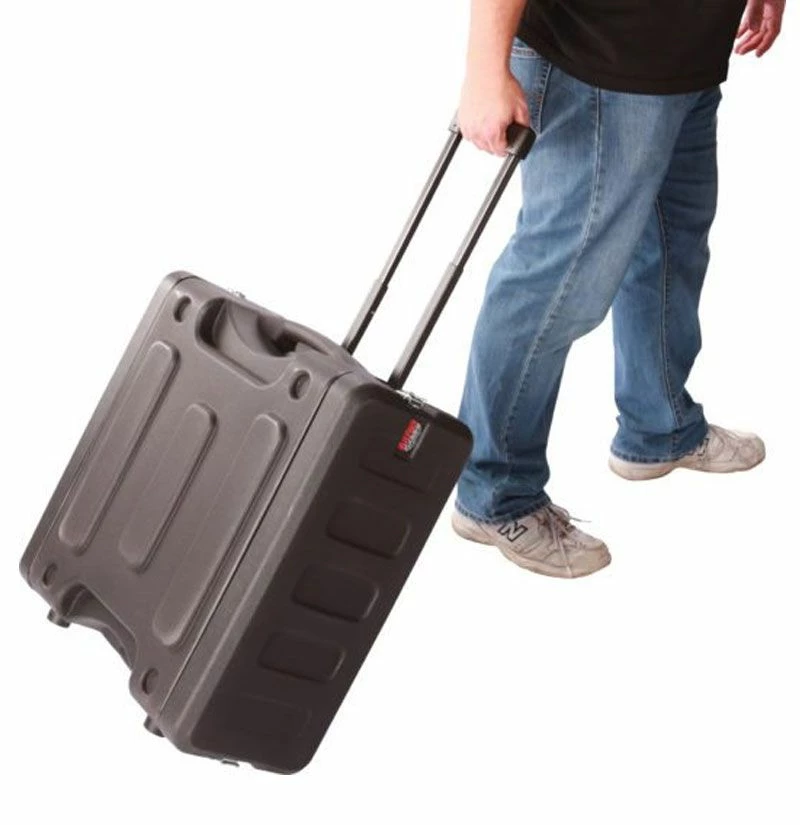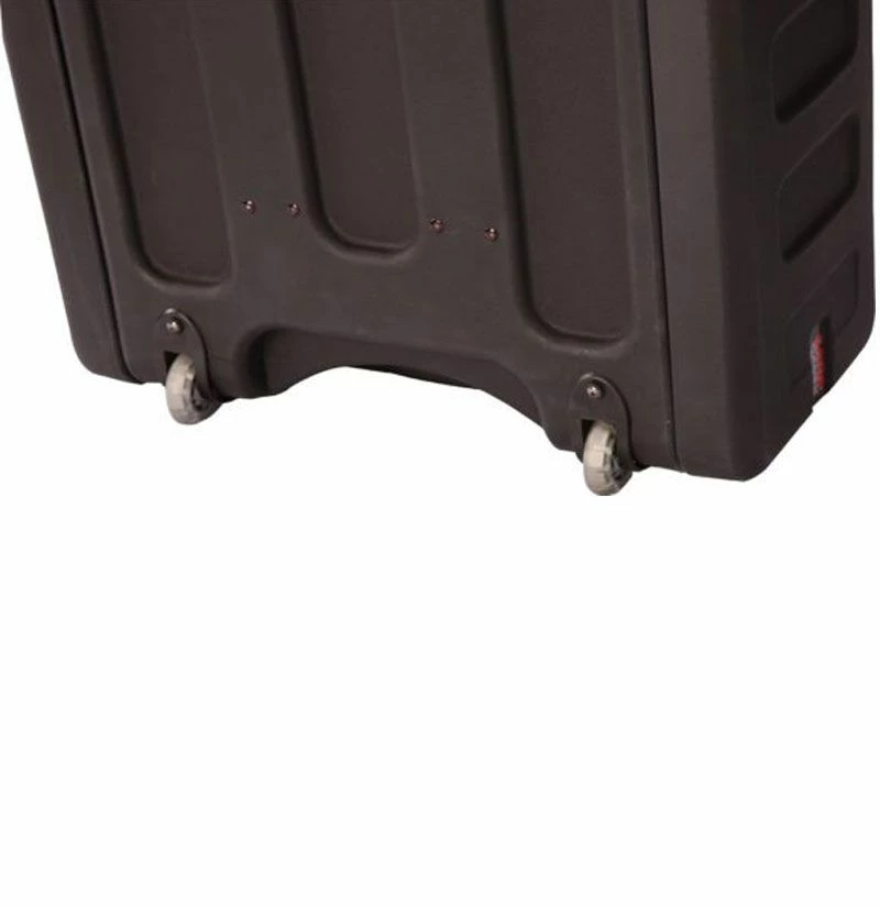Gator’s G-PROR-6U-19 Pro Series Rolling Rack is a 6 Unit 19 in. Deep Roto-Molded Rack Case made from a high-density military-grade polyethylene. This case is virtually indestructible with features including molded, ergonomic comfortable side carrying handles, smooth-rolling, low-profile roller blade style wheels that let you pull your gear with ease, a telescoping tow handle for easy transport and heavy-duty recessed twist latches will withstand years of constant use.