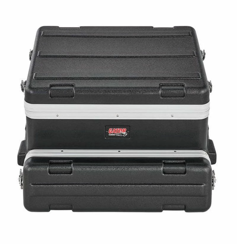 Gator’s GRC-8X2 slant top console has a 8U top 2U bottom with front, rear & top rack rails. Features including rear wire access, heat treated bolts with protective washers and comfortable recessed side carrying handles. This case is built to ATA specifications and is constructed of lightweight Molded Polyethylene.