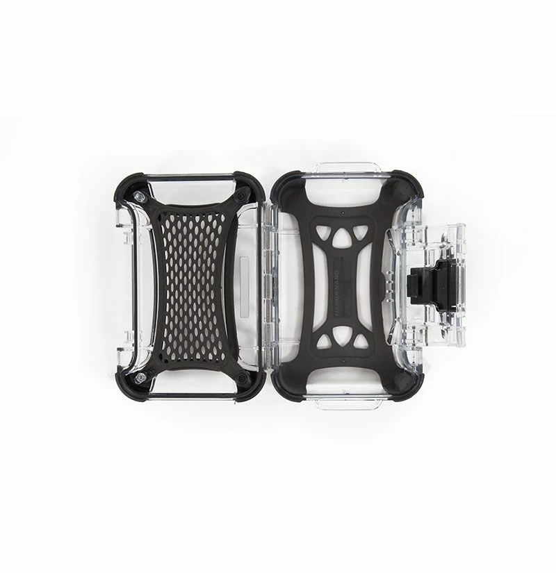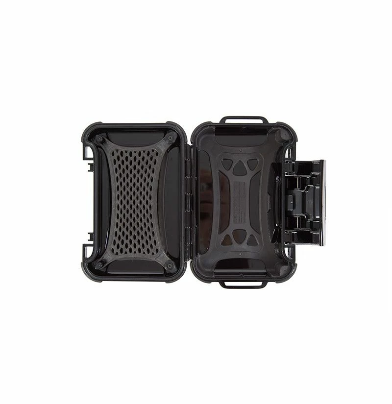 The exterior features Santoprene rubber bumpers that provide added grip on wet surfaces and prevent scratches on delicate finishes. It’s compact design, it offers 6.7 x 3.8 x 1.9 inches of interior space. The interior has a rubberized bottom helps shield items from shocks and bumps and a protective webbing makes organizing the contents of your case simple.