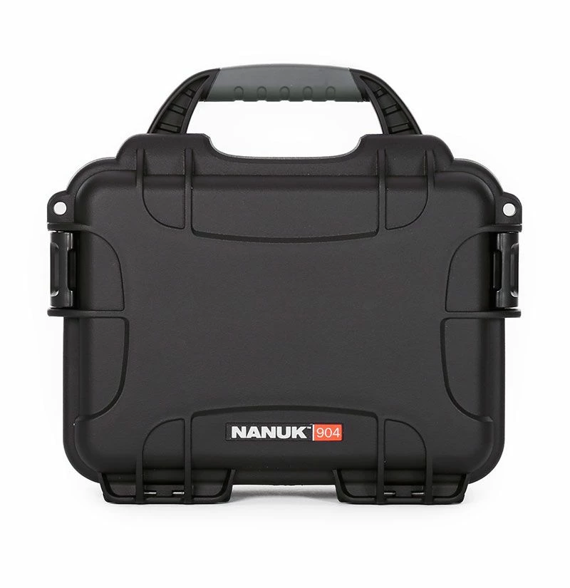 The Nanuk 904 Small Case is waterproof, crushproof and shockproof. This ultra-durable, compact case has many features including an impenetrable tough resin shell and side mounted PowerClaw latching system. An integrated lid stay prevents the lid from closing while you are accessing your equipment. The 904 case has a molded-in bezel system, an automatic pressure valve, stainless steel hardware and two padlockable hasps molded directly into case. A large, folding, soft grip handle makes transporting effortless. Grooves on the front interlock with built-in feet at the base when stacking multiple cases of the same size.