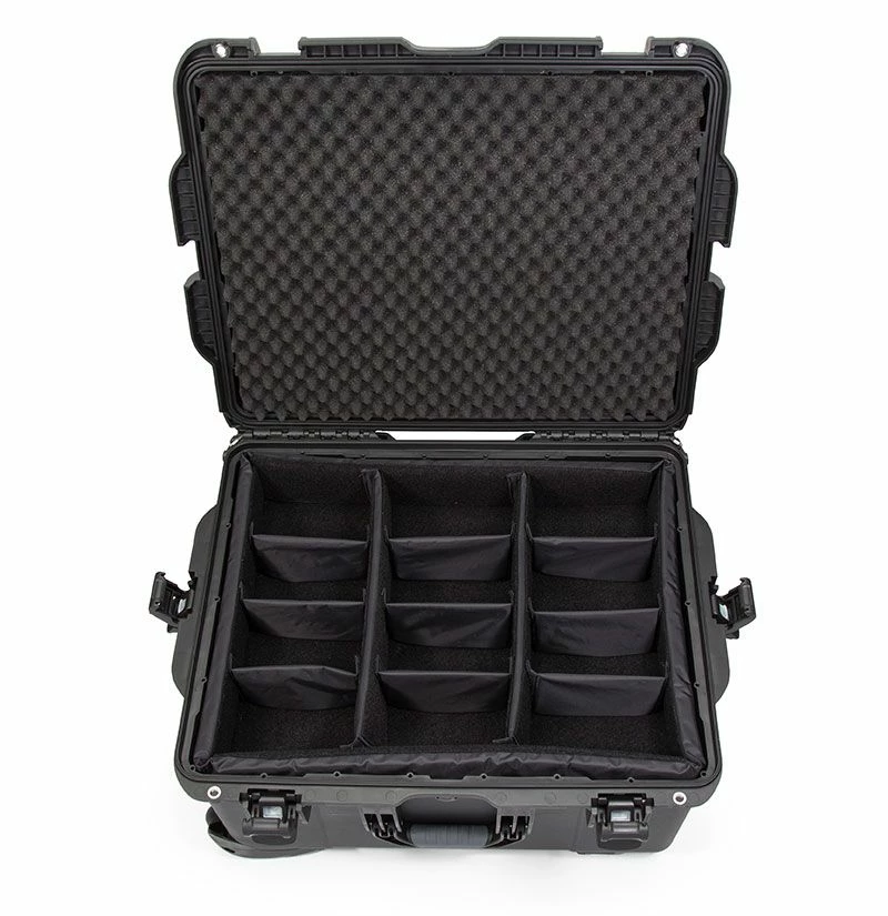 The Nanuk 960D Large Wheeled Case has sturdy Polyurethane wheels and 3 soft grip handles: a spring loaded top handle, a large fold down handle, and a two-stage retractable handle making transporting your gear a breeze. The case interior has adjustable padded dividers. If you require compartmentalized protective organization of your components or equipment, these padded dividers are the right choice. Easily tailored to your needs with repositionable hook and loop fasteners, the padded dividers are designed to easily organize and protect your equipment.