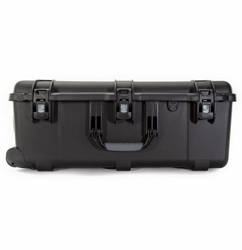 The Nanuk 963 Large Wheeled Case has sturdy Polyurethane wheels and 3 soft grip handles: a spring loaded top handle, a large fold down handle, and a two-stage retractable handle making transporting your gear a breeze.