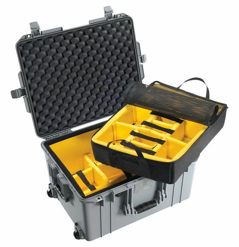 Pelican 1607 Air Large Air Case with Wheels, Retractable Pull Handle and Padded Dividers Interior