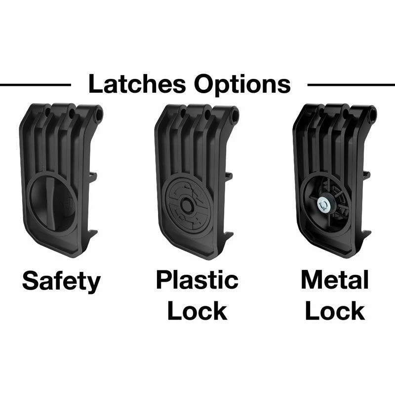 - Optional Keyed Locking Latches Available in Chrome Metal or Non-Corrosive Plastic