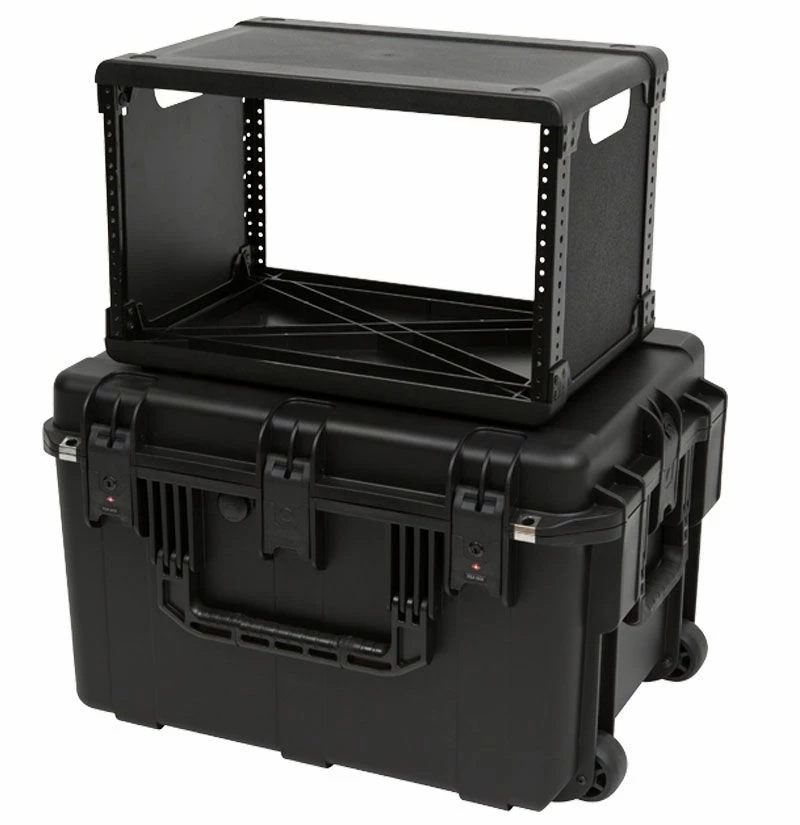 SKB 6U iSeries Injection Molded Case with Removable 13 in. Deep Fly Rack. Convenient in-line wheels and a push button release pull handle provides easy transport.