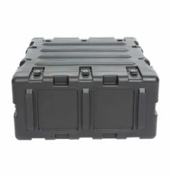 The rugged roto-molded shell ensures industry leading strength and impact resistance. The standard commercial off the shelf (COTS) case comes with 2 in. deep front and rear lids to accommodate rack gear that is longer than 20 inches. Molded-in stacking ribs and lugs are designed to stack with all SKB 3RR and 3RS cases, as well as competitive manufacturer cases, and feature black powder coated stainless steel hardware that is recessed for protection and 4 comfort grip spring loaded lift handles which allow for easy movement. An automatic pressure relief valve is another standard feature along with gasket sealed lids that include convenient lid hangers to store your lids when your equipment is in operation. Coupling straps are included for securing the racks together when stacked.