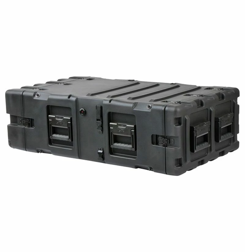 3RS Series cases are molded of LMDP Linear Medium Density Polyethylene plastic that meets or exceeds MIL-STD 810G standards. Measuring 24 in. deep from rail to rail with a standard 19 in. rack width per ANSI/EIA-310-C specification, 3RS Shock Racks also feature square-hole rack rails to accommodate either #10-32 US standard or 6mm International standard cage nuts which are supplied with the cases.