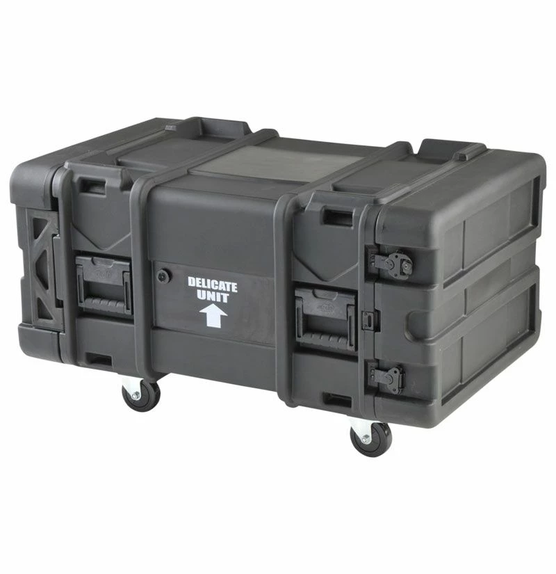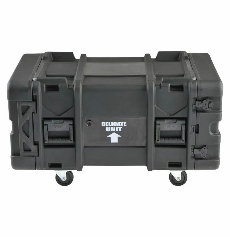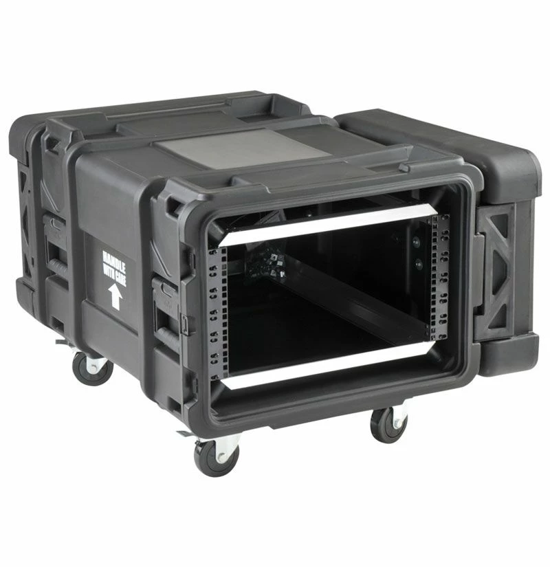- 28 in. Deep 6U ATA rated roto-molded shock and water resistant rack with 4 in. wheels