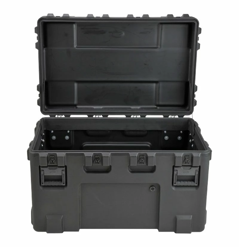 SKB‘s 3R Series cases are built with superior rotationally molded strength and ergonomic design, and feature an impenetrable, yet lightweight LLDPE shell for maximum impact resistance to withstand levels of punishment in excess of all ATA and military shipping specifications Mil-Std-810 and MIl-C4150J.
