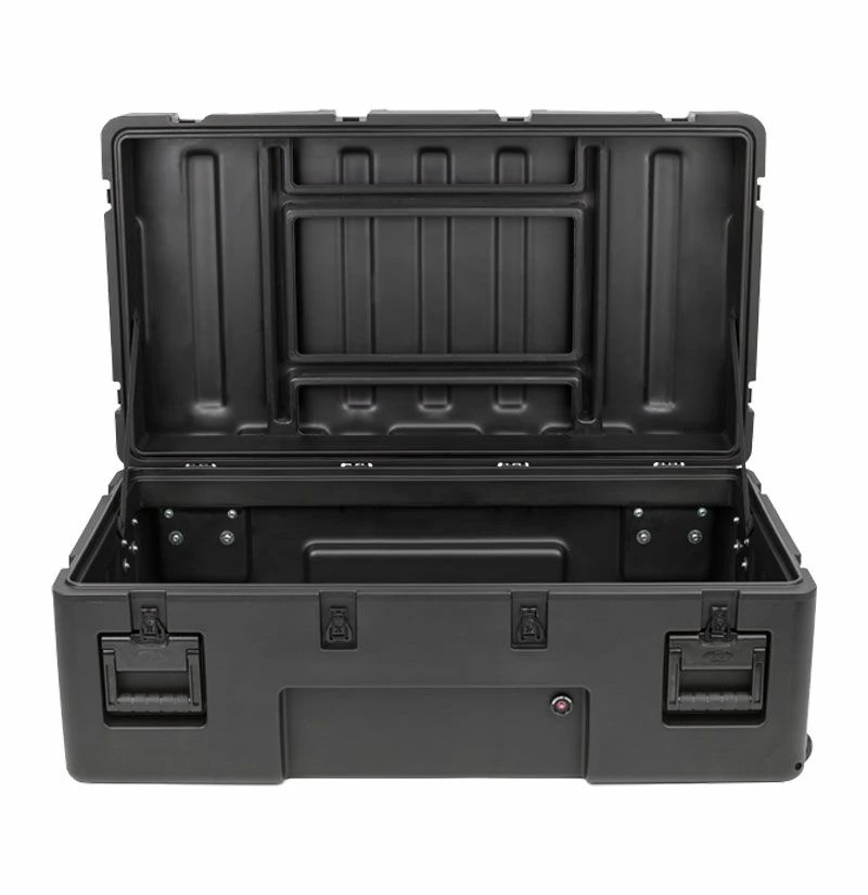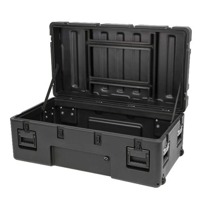 SKB‘s 3R Series cases are built with superior rotationally molded strength and ergonomic design, and feature an impenetrable, yet lightweight LLDPE shell for maximum impact resistance to withstand levels of punishment in excess of all ATA and military shipping specifications Mil-Std-810 and MIl-C4150J.