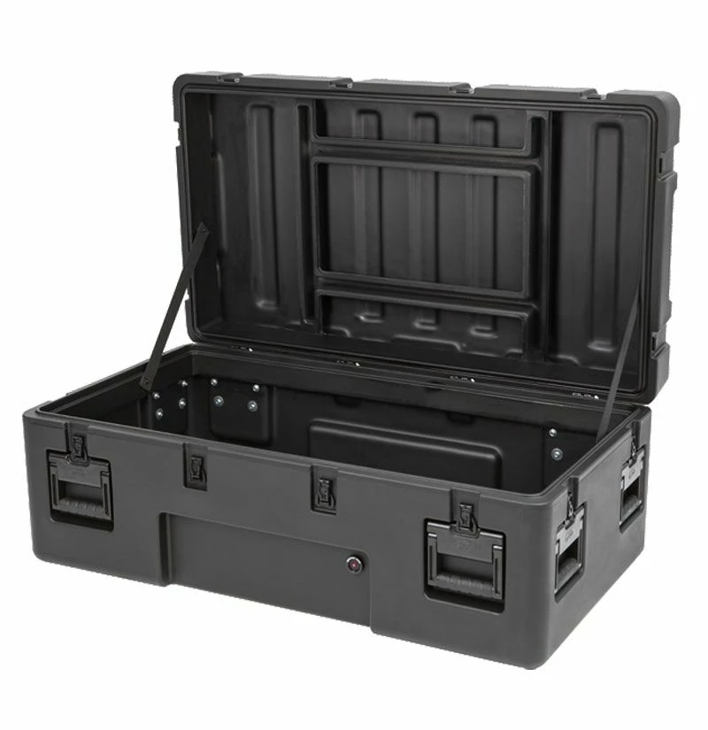 SKB‘s 3R Series cases are built with superior rotationally molded strength and ergonomic design, and feature an impenetrable, yet lightweight LLDPE shell for maximum impact resistance to withstand levels of punishment in excess of all ATA and military shipping specifications Mil-Std-810 and MIl-C4150J.