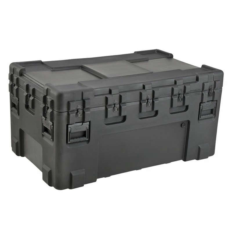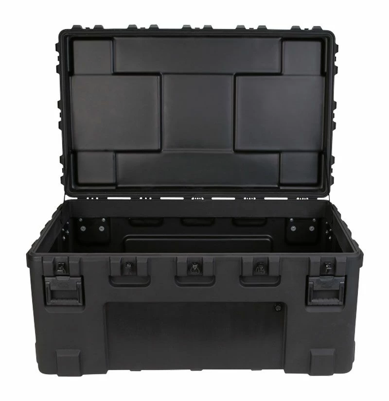 Roto Military Standard Waterproof Case features rugged duty case shell is UV, solvent, corrosion and fungus resistant – making it a great solution for long-term protection for equipment in transit. The exterior of these SKB 3R cases are accompanied by black powder coated stainless steel hardware to prevent rusting and comfortable spring loaded rubber over-molded handles make for easy transport and shipping for these tough industrial and military standard utility cases.