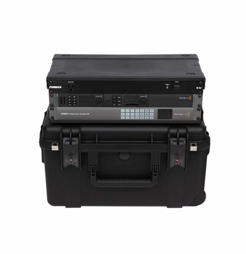 This case features convenient in-line wheels and a push button release pull handle providing easy transport, threaded rails in the front and back with a 9 in. rail-to-rail depth, and molded-in hinges contributing to the case’s sleek appearance and add additional protection. Carry-on size has TSA-compliant trigger-release latches providing dependable closure and can be secured with a padlock (See Accessories Tab).